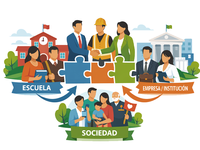 Este componente está pensado para ti, que formas parte de una Empresa o Institución Pública y quieres conocer de manera práctica qué es la Educación Dual y cómo puedes sumarte. Aquí te contaremos, con ejemplos sencillos, de qué se trata esta opción educativa, quiénes participan (Escuela, Empresa, Institución Pública e incluso familias) y para qué sirve. Además, podrás identificar algunos de los tantos beneficios de participar en esta opción educativa como son generar: talento joven mejor preparado, procesos más eficientes y una relación ganar–ganar con impacto social.